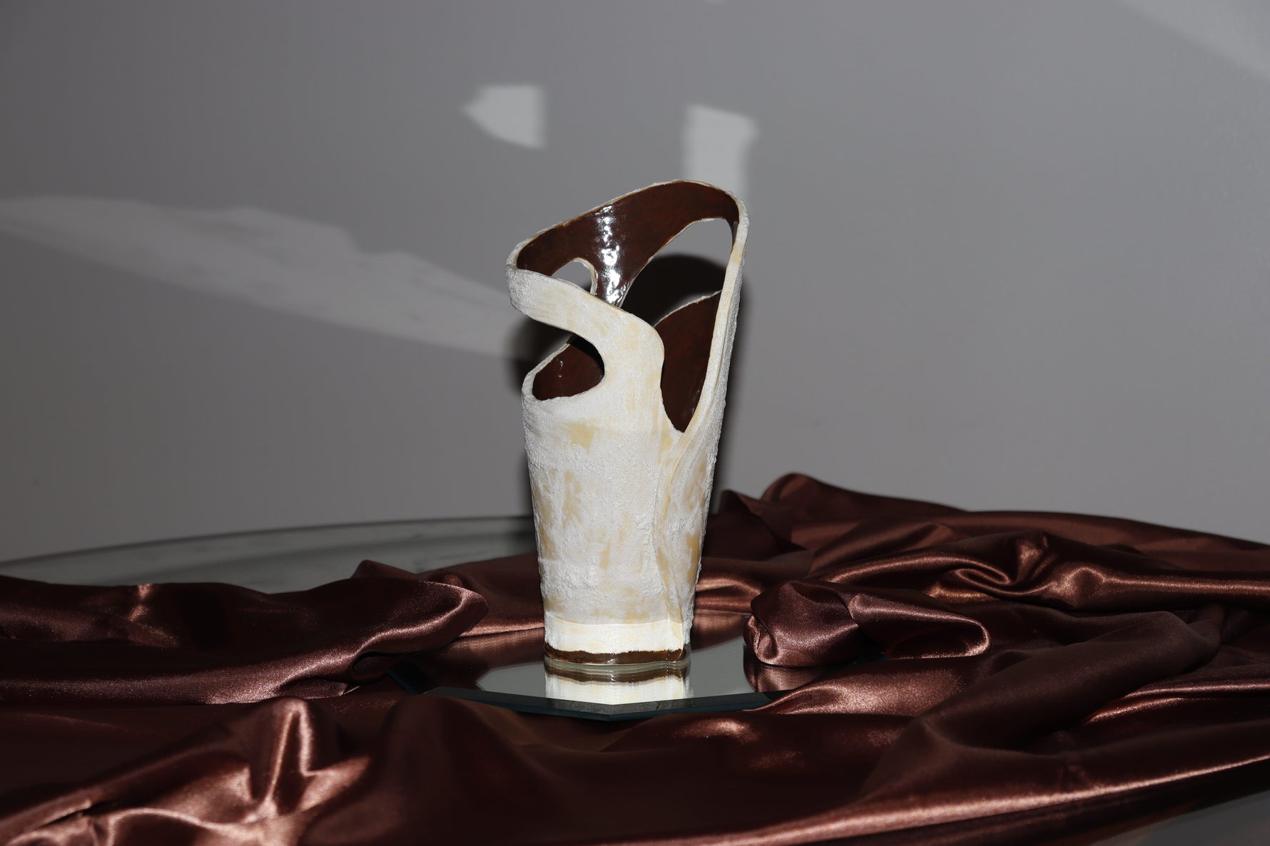 Unit price perThis unique, hand-sculpted cutout vase features a contrast of rough and smooth textures. It's the perfect addition to your bookshelf for showcasing art, or as a centerpiece with flowers.